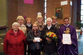 Einen Scheck über 300,- Euro überreichte nun der Vorstand des Kleingartenvereins Haberlandstraße e.V. an die MitarbeiterInnen des ökumenischen Sozialfrühstücks in Nette. Der stolze Betrag war im Rahmen des Erntedankfestes zusammen gekommen.