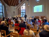 Am Donnerstagabend stand dann mit der ökumenischen Vesper ein weiterer Höhepunkt auf dem Programm. Knapp 60 Gläubige mit katholischer, evangelischer und neuapostolischer Konfession feierten diese gemeinsam mit Pfarrer Hubert Werning, Pfarrerin Anne-Kathrin Koppetsch und Hirte Uwe Dietzel in der farbig illuminierten Kirche. In ihrer Predigt stellte Pfarrerin Koppetsch dabei mit Blick auf das Glaubensbekenntnis von Nicäa die Verbundenheit der christlichen Konfessionen in den Mittelpunkt ihrer Gedanken. Musikalisch mitgestaltet wurde der Gottesdienst einmal mehr von Organist Tobias Hemker an der Orgel, der diesmal vom Chor der neuapostolischen Kirche Bodelschwingh unter der Leitung von Christoph Kokoska unterstützt wurde. Im Anschluss an den Gottesdienst trafen sich die Gläubigen der verschiedenen Konfessionen dann zum Austausch im Gemeindehaus.