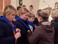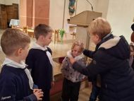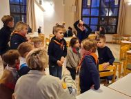 Angesichts des Schmuddelwetters starteten die Pfadfinder der DPSG St. Remigius mit einem Chaosspiel im Gemeindehaus. In altersgemischten Gruppen galt es dabei viele kleine Aufgaben zu lösen. Da der Regen immer noch nicht nachgelassen hatte, ging es zum diesjährigen Stufenwechsel in die St. Remigiuskirche. Dort unterstrich Gemeindereferent Markus Kohlenberg den Gemeinschaftsgeist der Pfadfinder und übergab dann das Mikrofon an die Vorsitzende Gesa Heidenreich, welche gemeinsam mit den jeweiligen Gruppenleitern die Tücher der jeweiligen Stufe überreichte. Nach den neuen Bibern, die ihr weißes Tuch entgegen nahmen, folgten die jeweils wechselnden Kinder und Jugendlichen, die ein Tuch in der neuen Stufenfarbe erhielten.