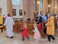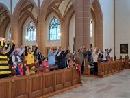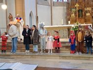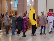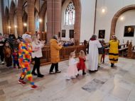 Besonders die Kinder waren in bunten Kostümen gekommen und brachten sich mit viel Freude ein. Da bekam der bekannte Hit: "Die Hände zum Himmel" gleich eine doppelte Bedeutung. Musikalisch begleitete Christoph Greven den Gottesdienst, und leitete zum Abschluss mit stimmungsvollen Liedern auch eine Polonaise durch die Kirche ein.
